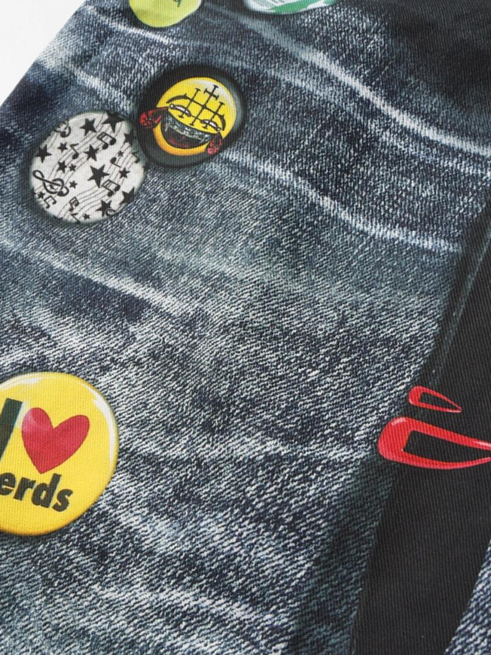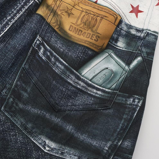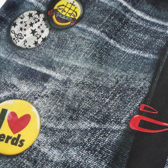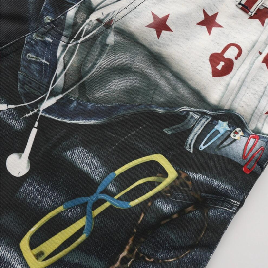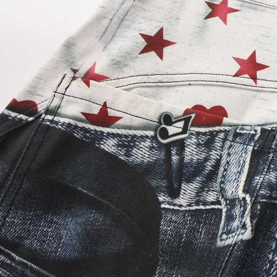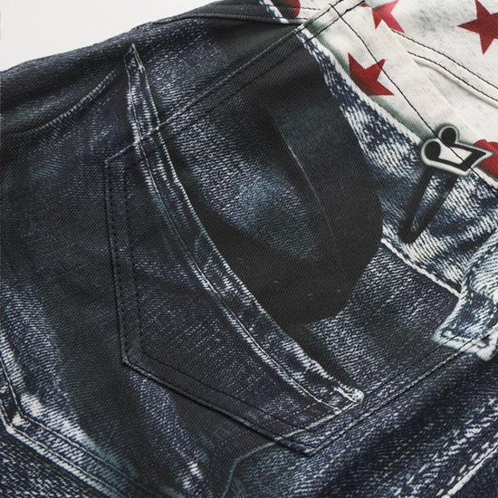 - Fabric: Premium denim blend with high-definition print
