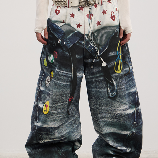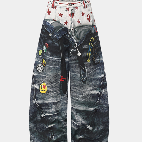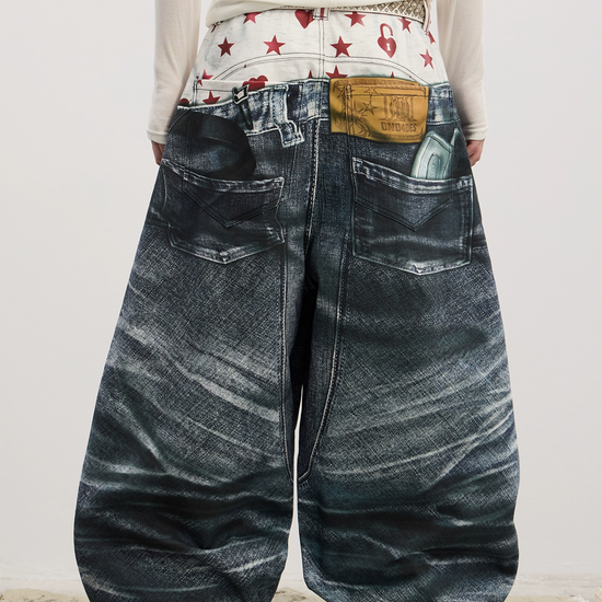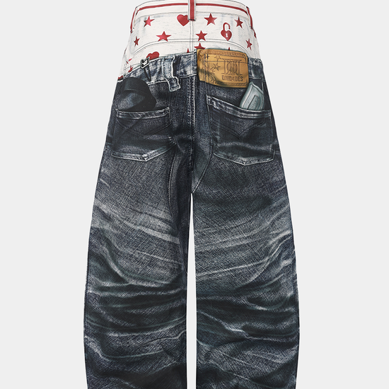 American Original 3D Print Double Waist Baggy Jeans