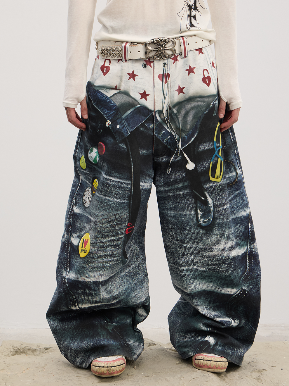 - Ultra-wide baggy silhouette gives a bold Y2K vibe