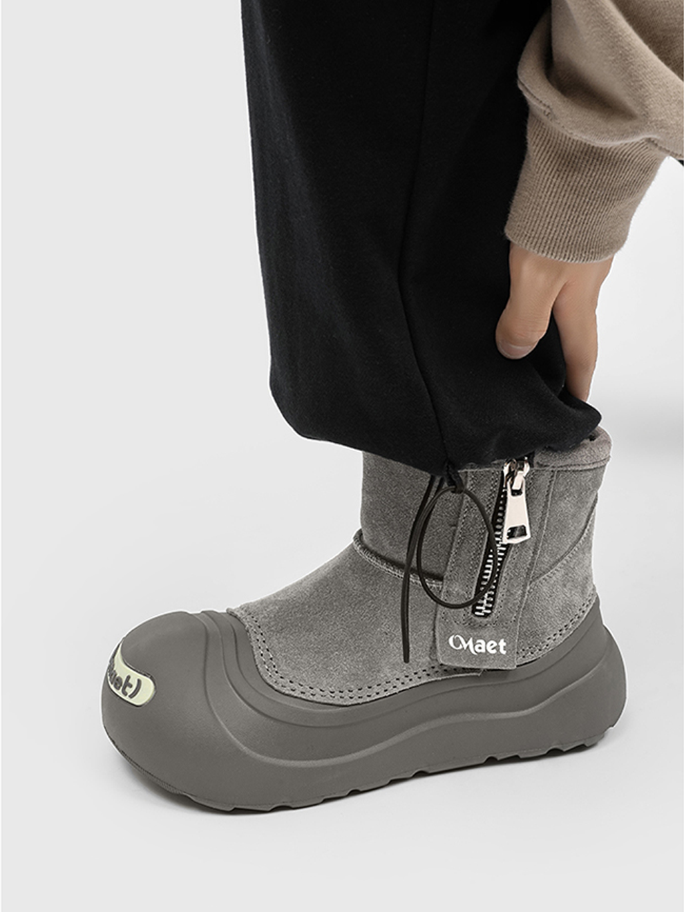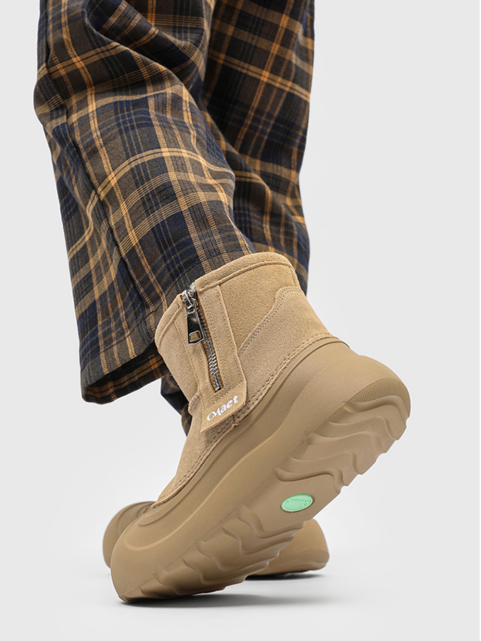 • Detail Features: Short ankle height, side zipper + hook tab, oversized toe cap, reinforced stitching, chunky anti-slip sole.