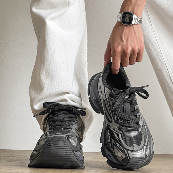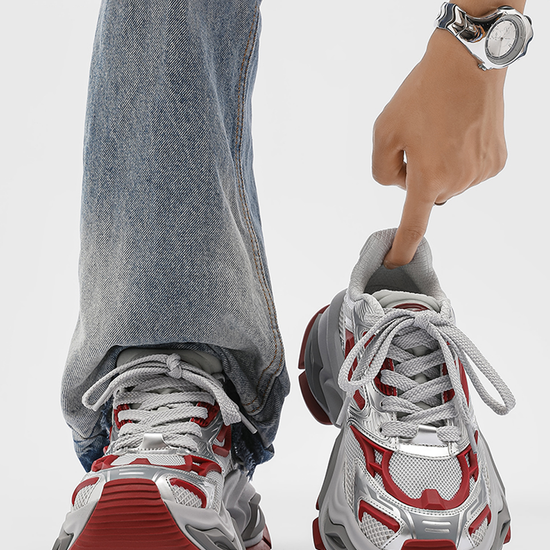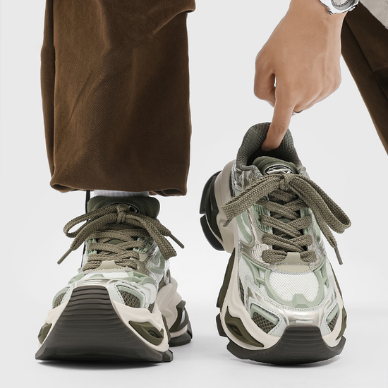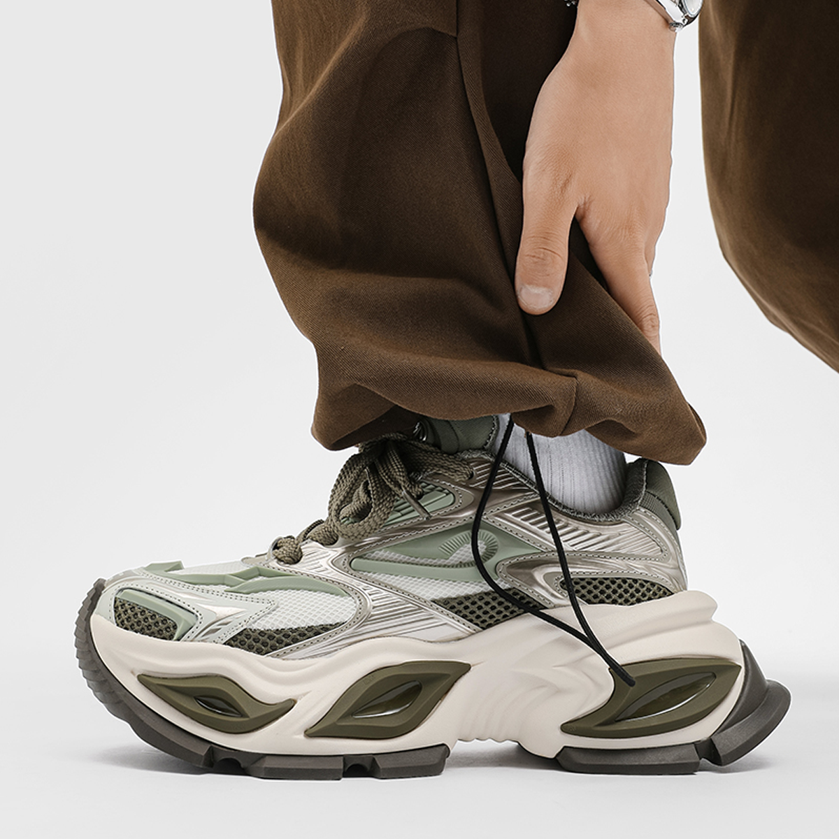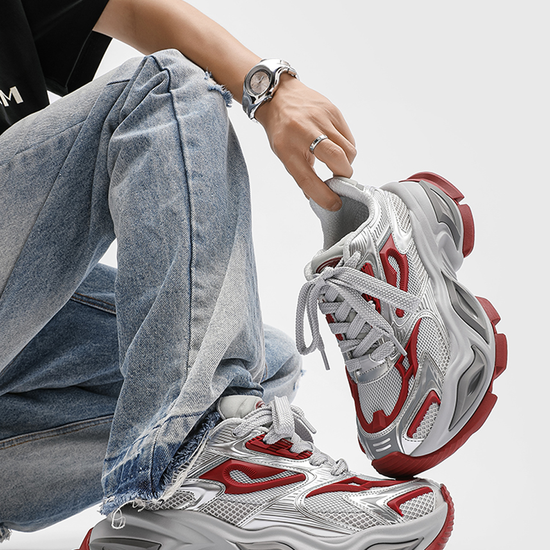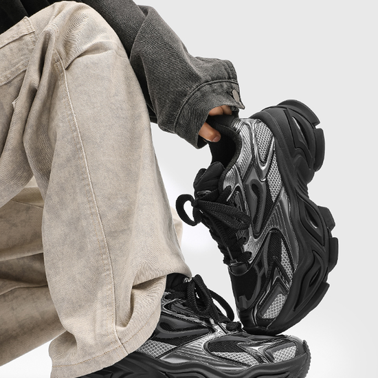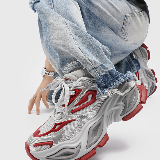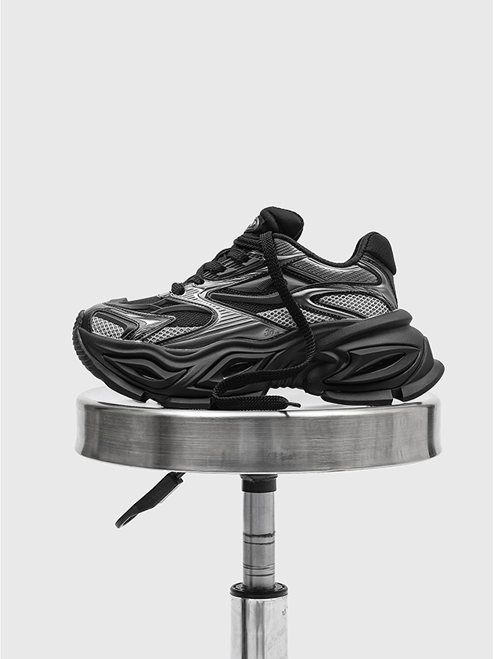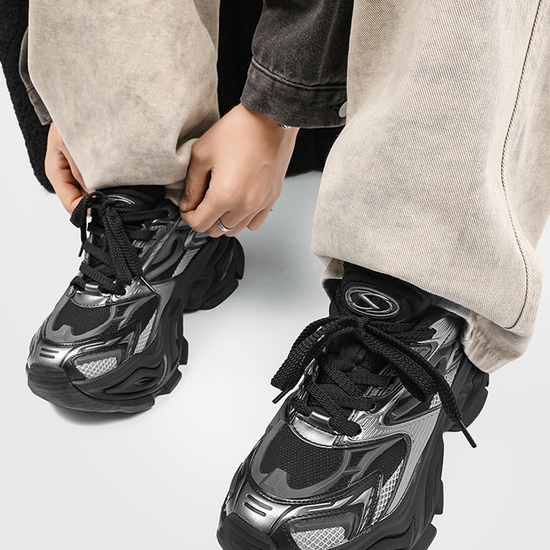 • Detail Features: Low-top chunky silhouette, lace-up closure, glossy reflective panels, reinforced toe, textured platform outsole.