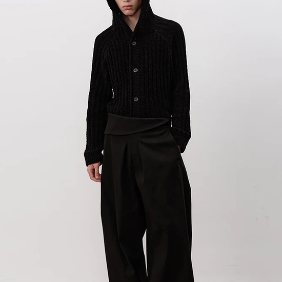 Chunky Rib Knit Buttoned Hoodie Sweater