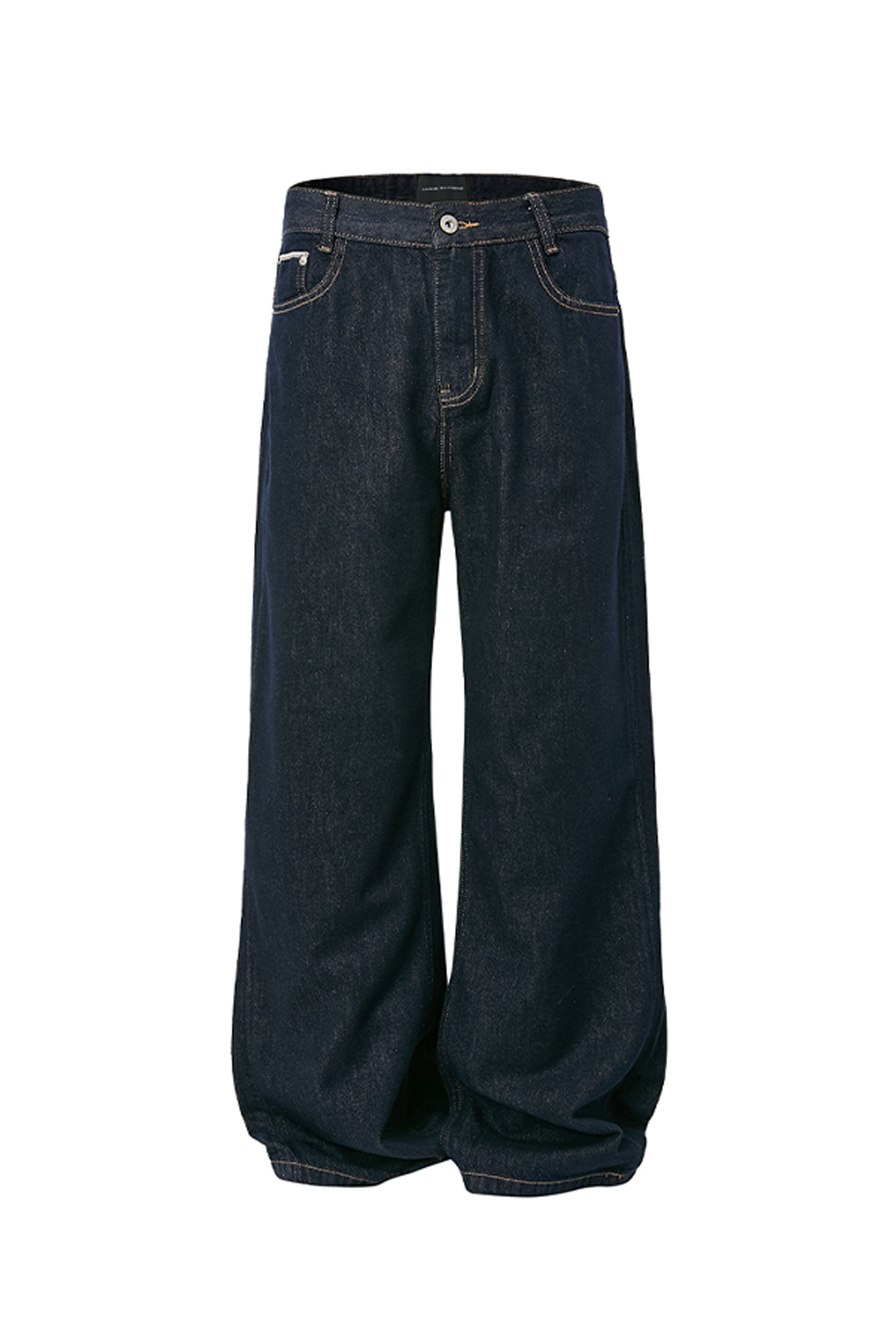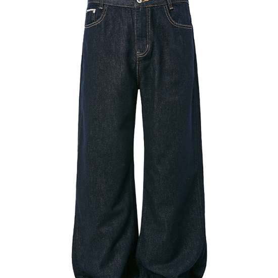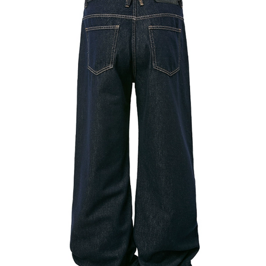 - Design Elements: Wide-leg cut, deep indigo wash, retro straight silhouette