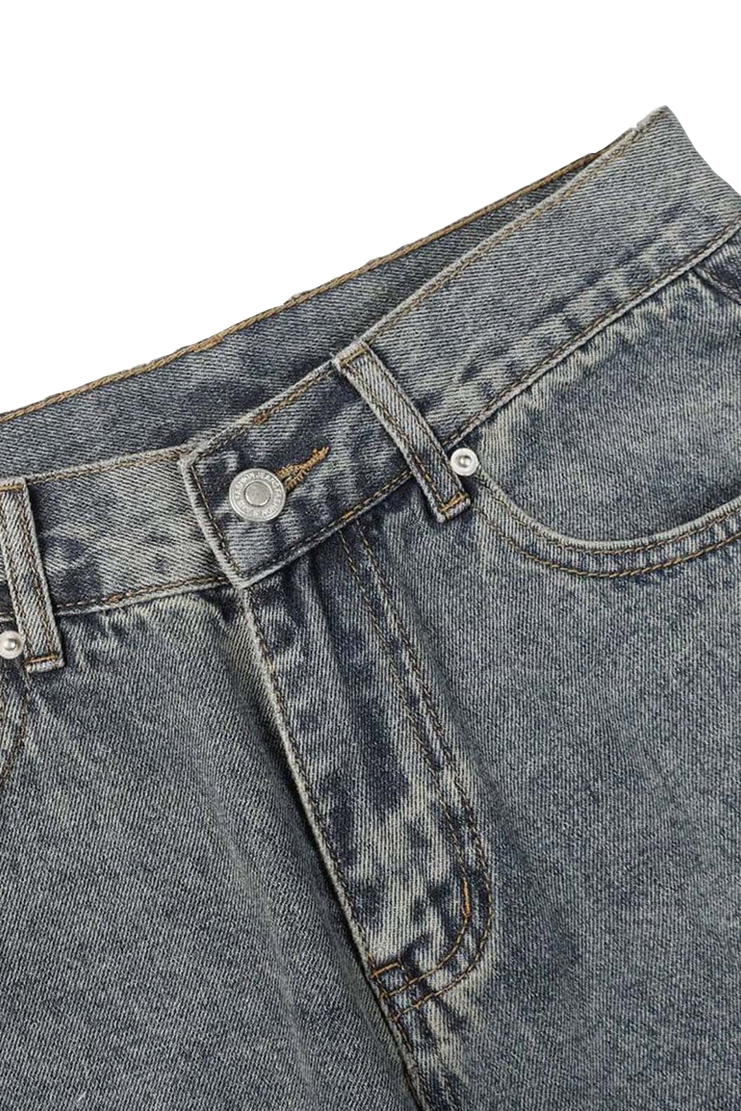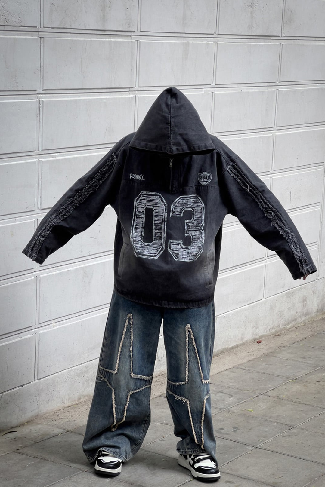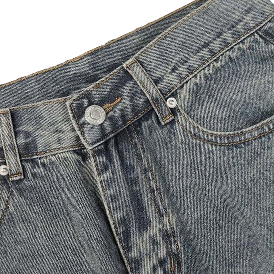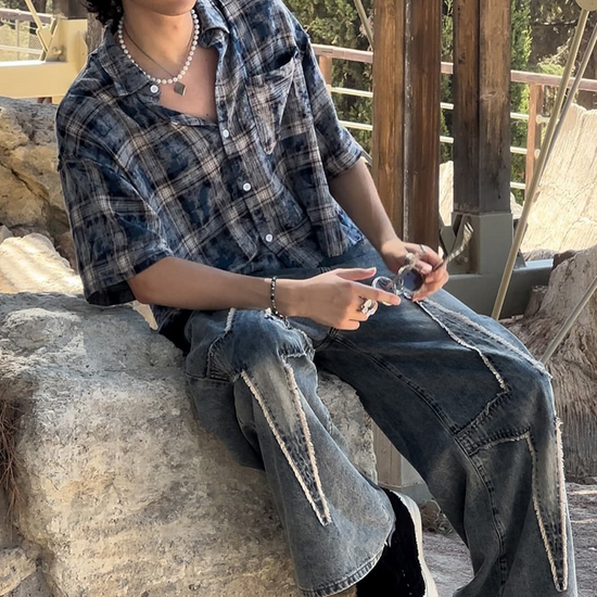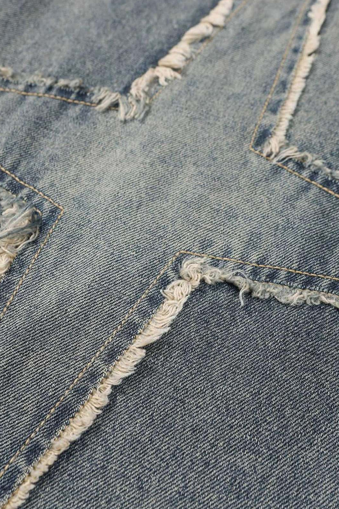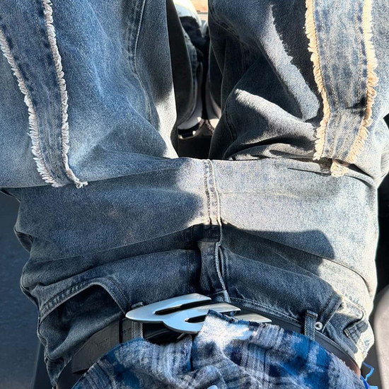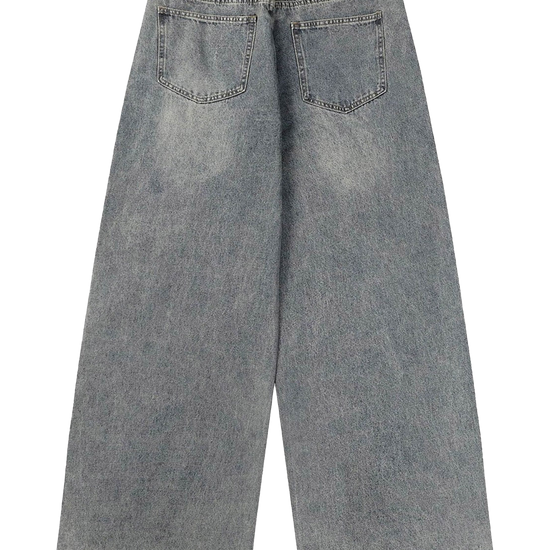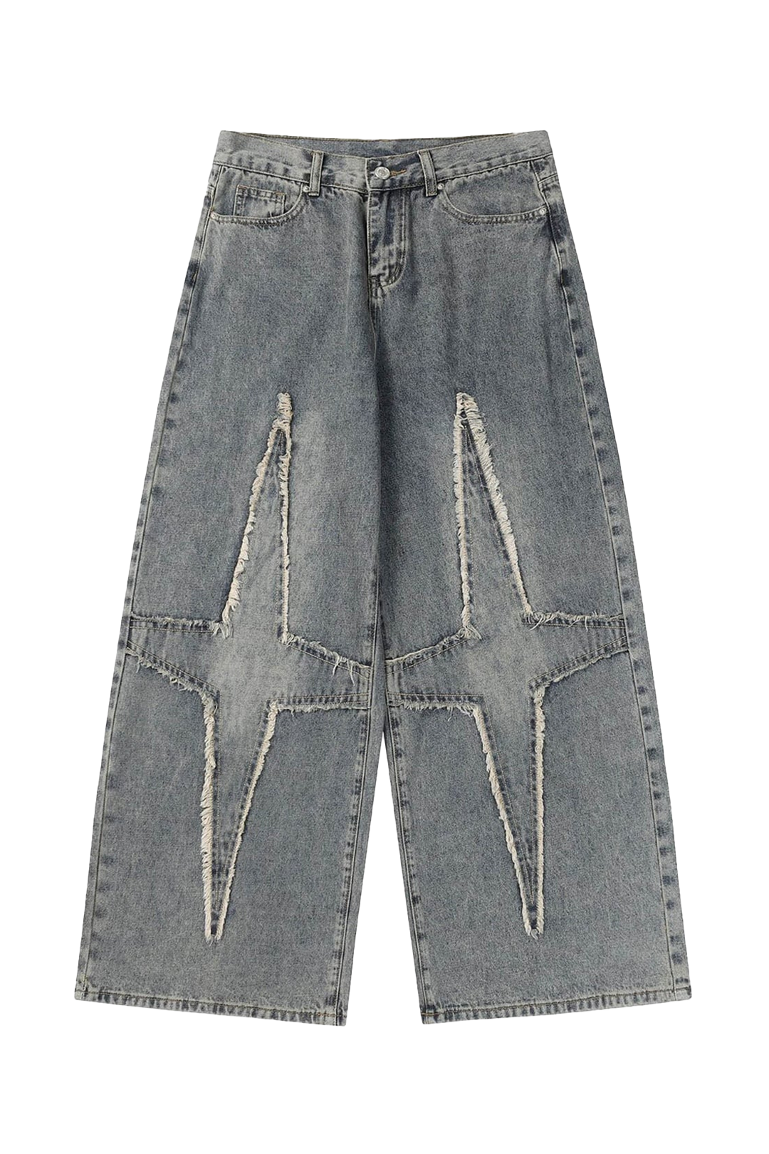 - Design Elements: Oversized cross-shaped patchwork, distressed edges, wide-leg fit