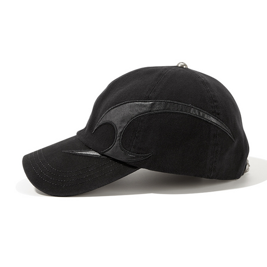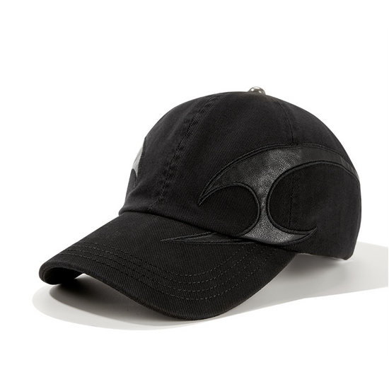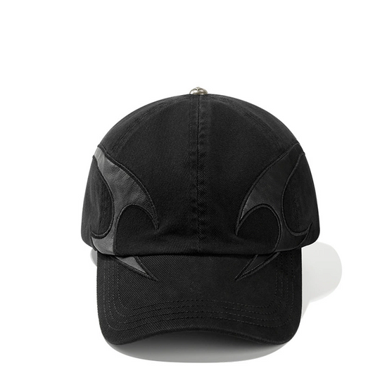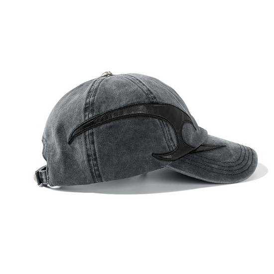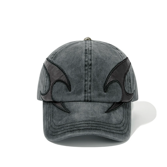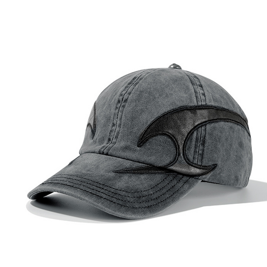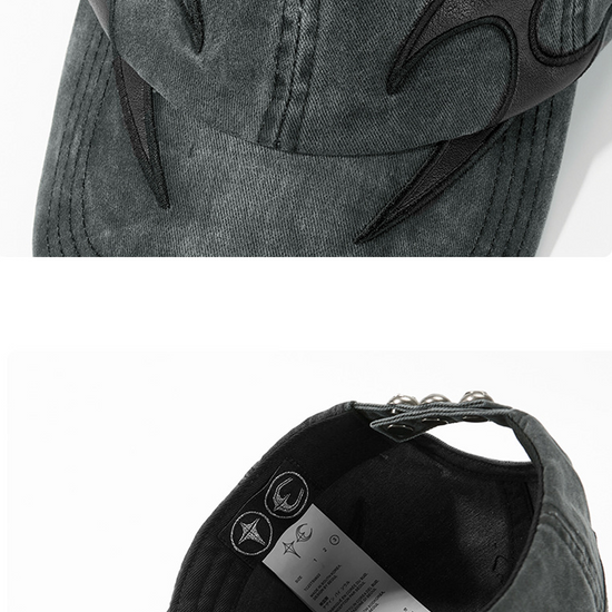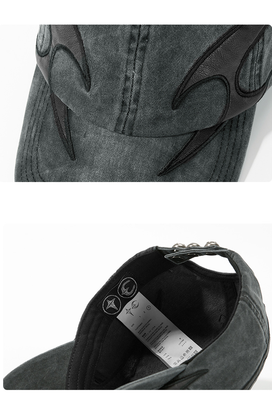 • Design Elements: Flame-shaped leather embroidery, washed cotton fabric, structured curved brim