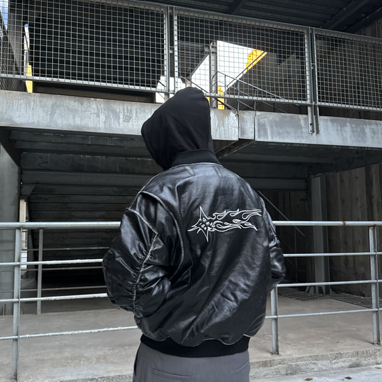 Relaxed bomber silhouette with oversized chest width for layering. Take your usual size for a roomy fit or size up for exaggerated streetwear style.