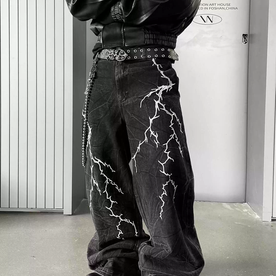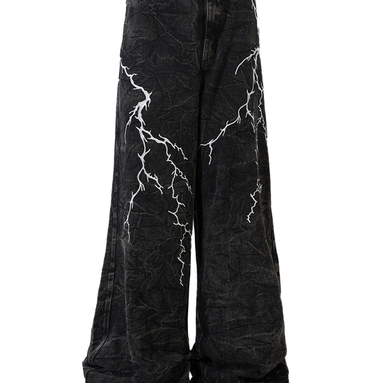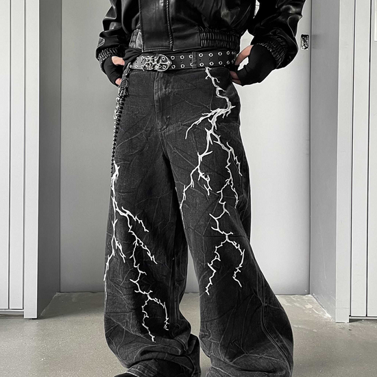 Lightning Embroidery Loose Denim