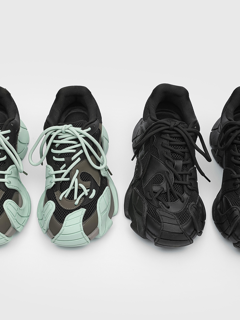 • Detail Features: Low-top chunky profile, lace-up closure, sculpted multi-panel sole, reinforced toe, ventilated mesh panels.