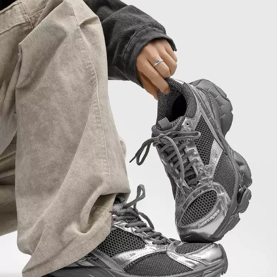 • Detail Features: Low-top chunky silhouette, lace-up closure, layered panels, reinforced toe, textured platform outsole.
