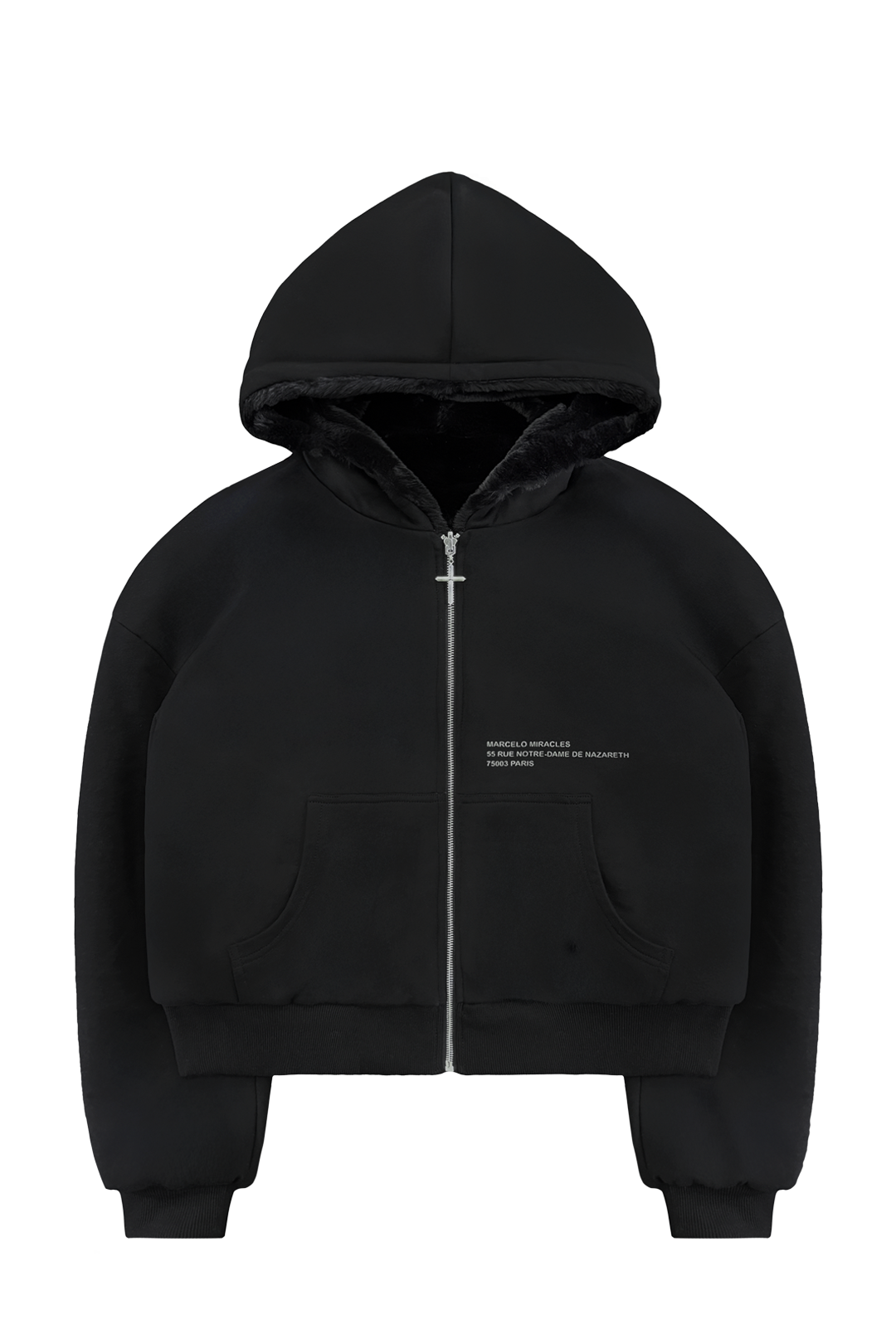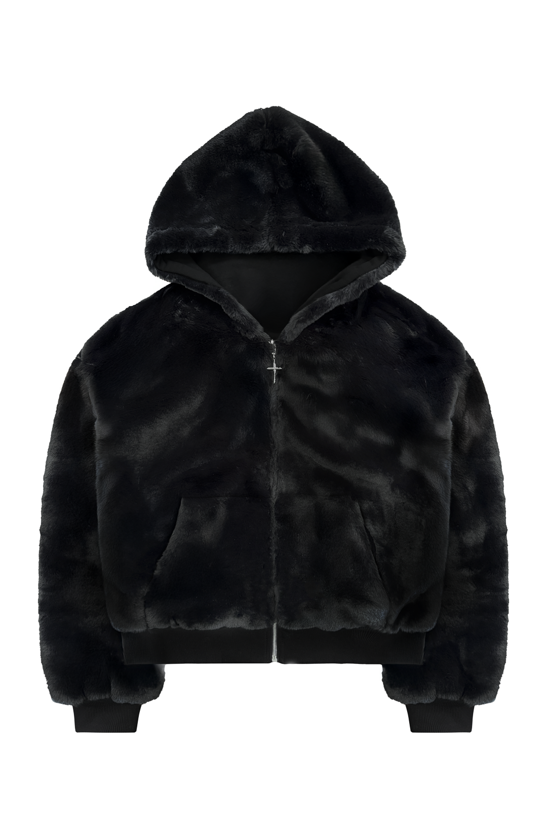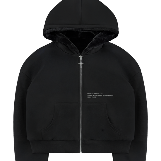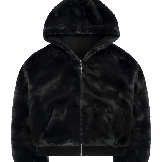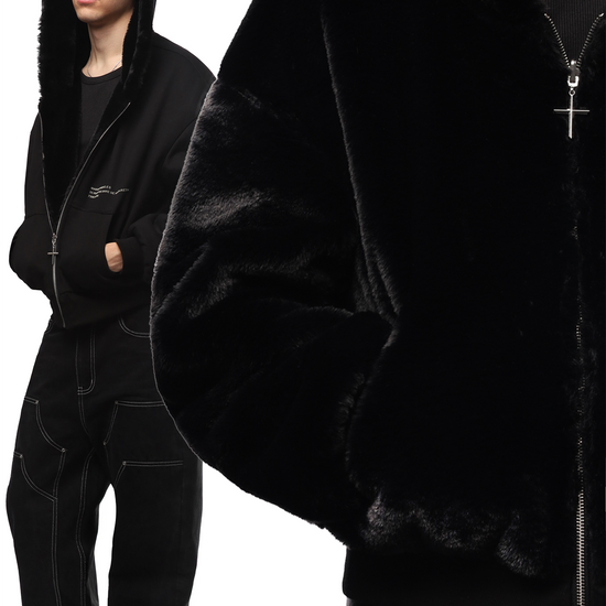 Reversible Fur Zip Hoodie In Black