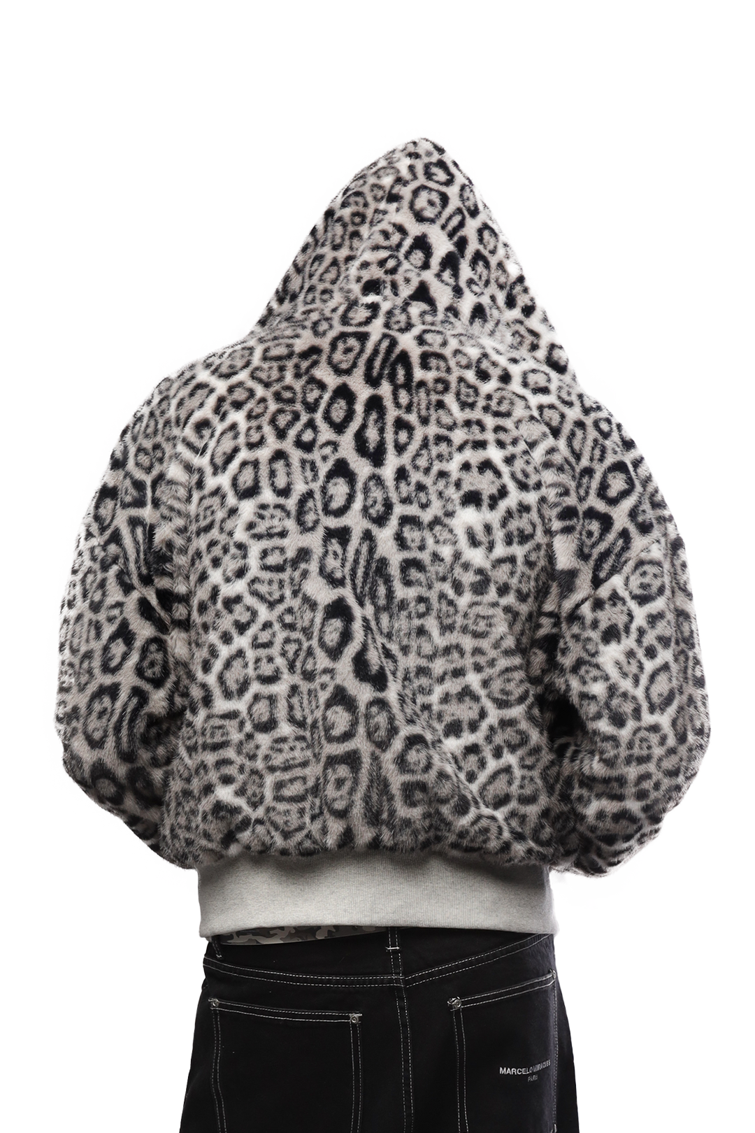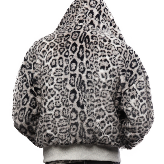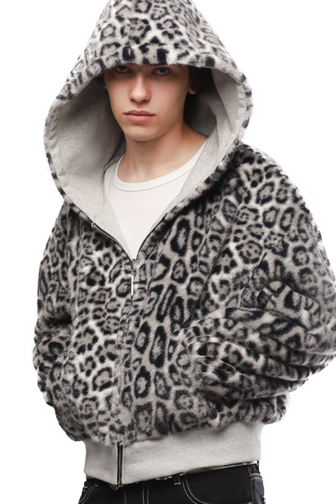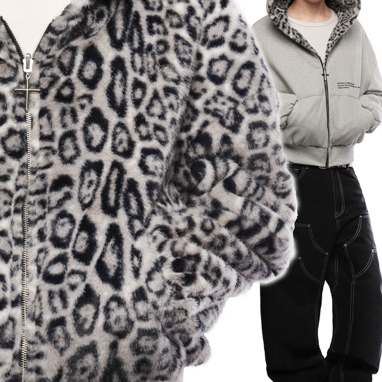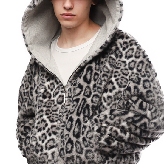 - Design Elements: Reversible faux fur, bold leopard print, oversized fit, zip-up hoodie