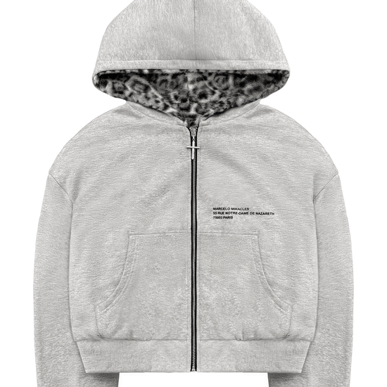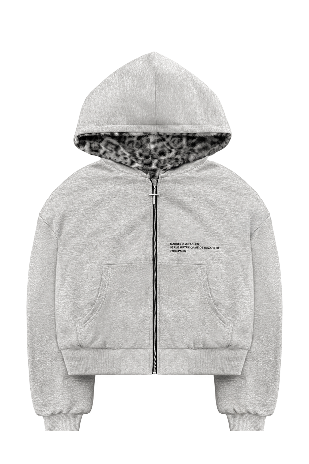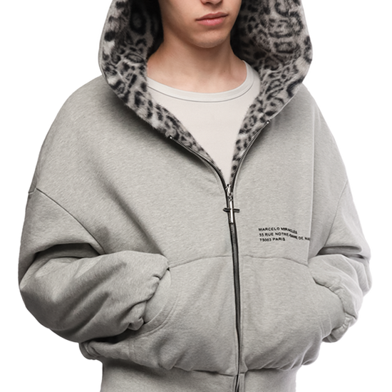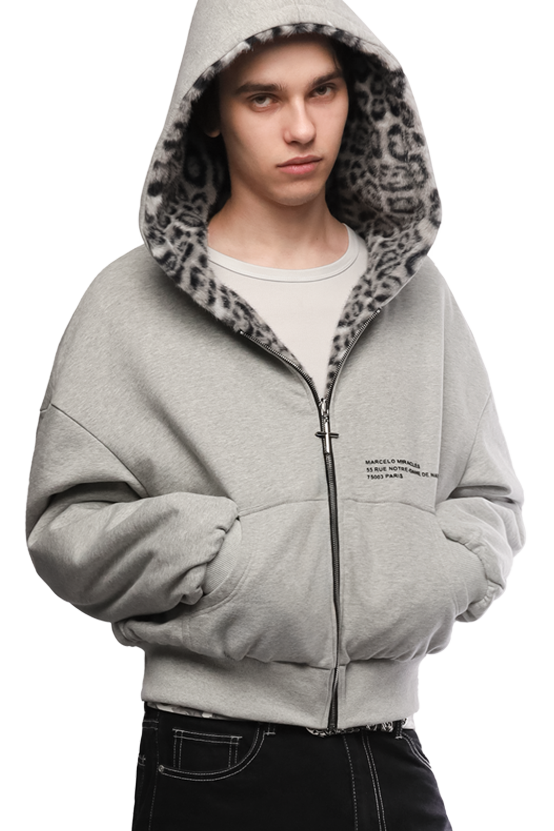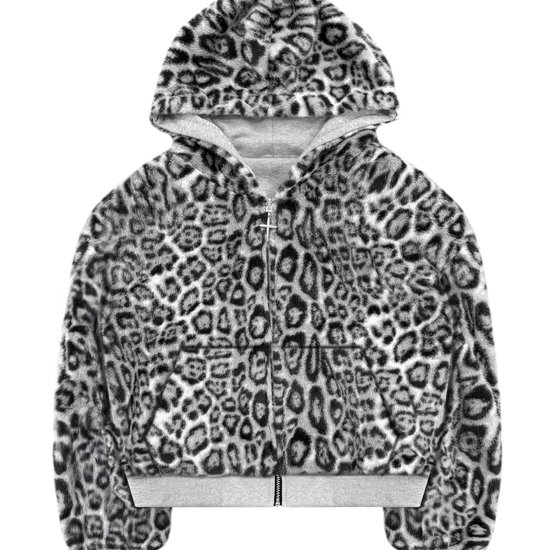 - Design Elements: Reversible faux fur, bold leopard print, oversized fit, zip-up hoodie