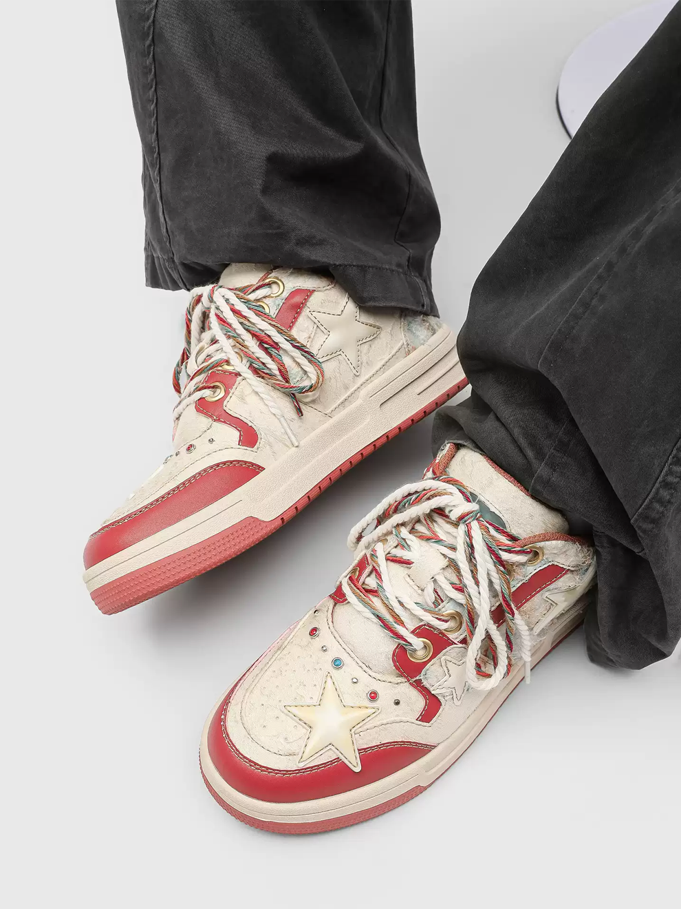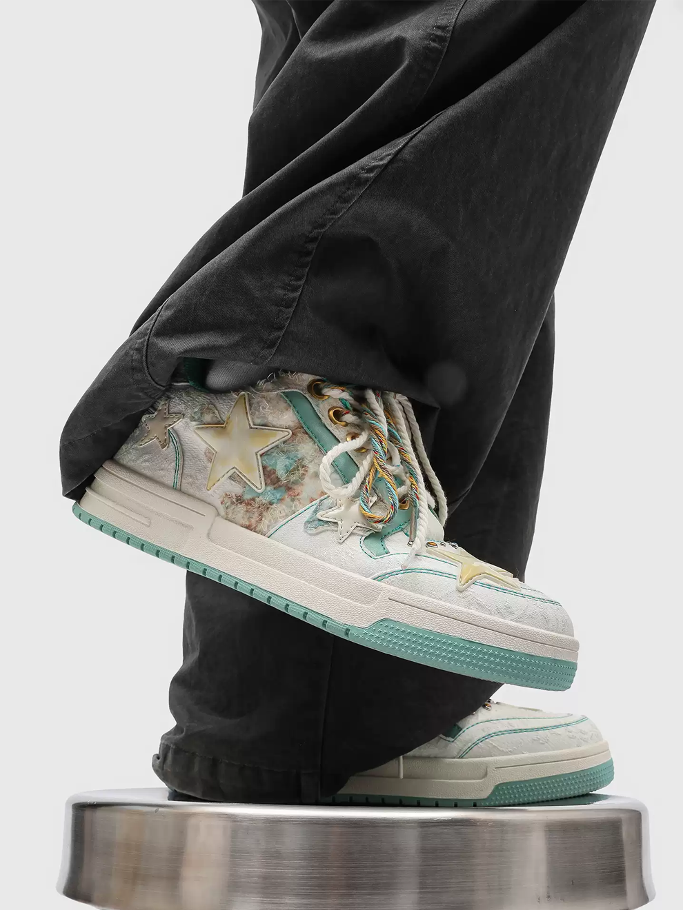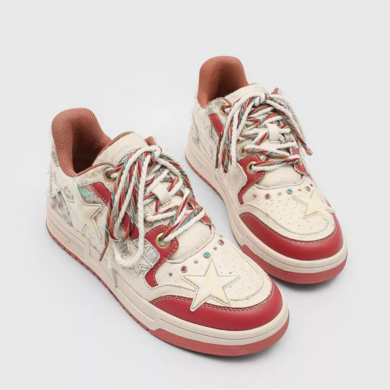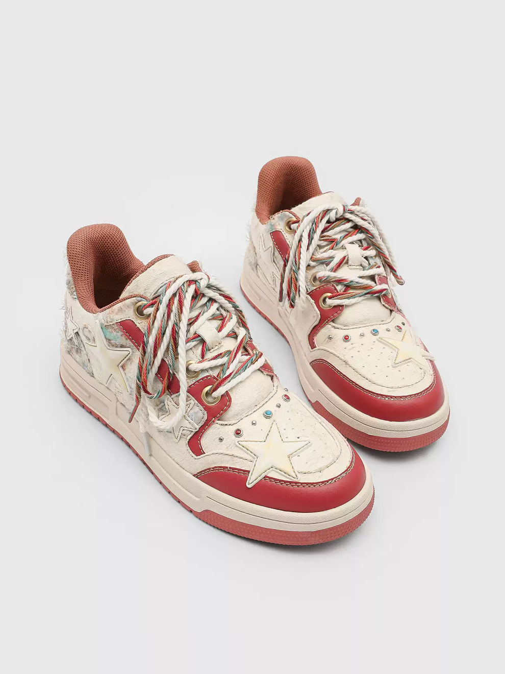 • Detail Features: Low-top silhouette, lace-up closure, star applique, contrast panels, chunky platform tread.