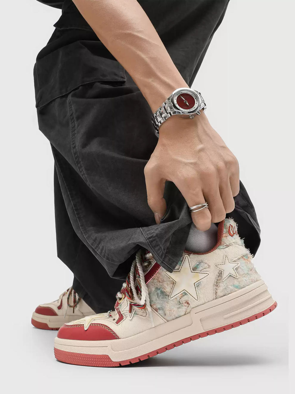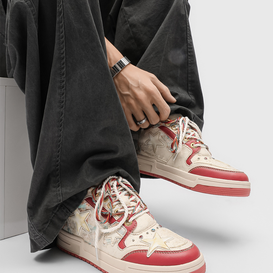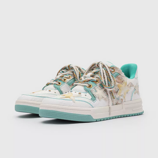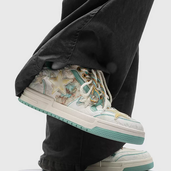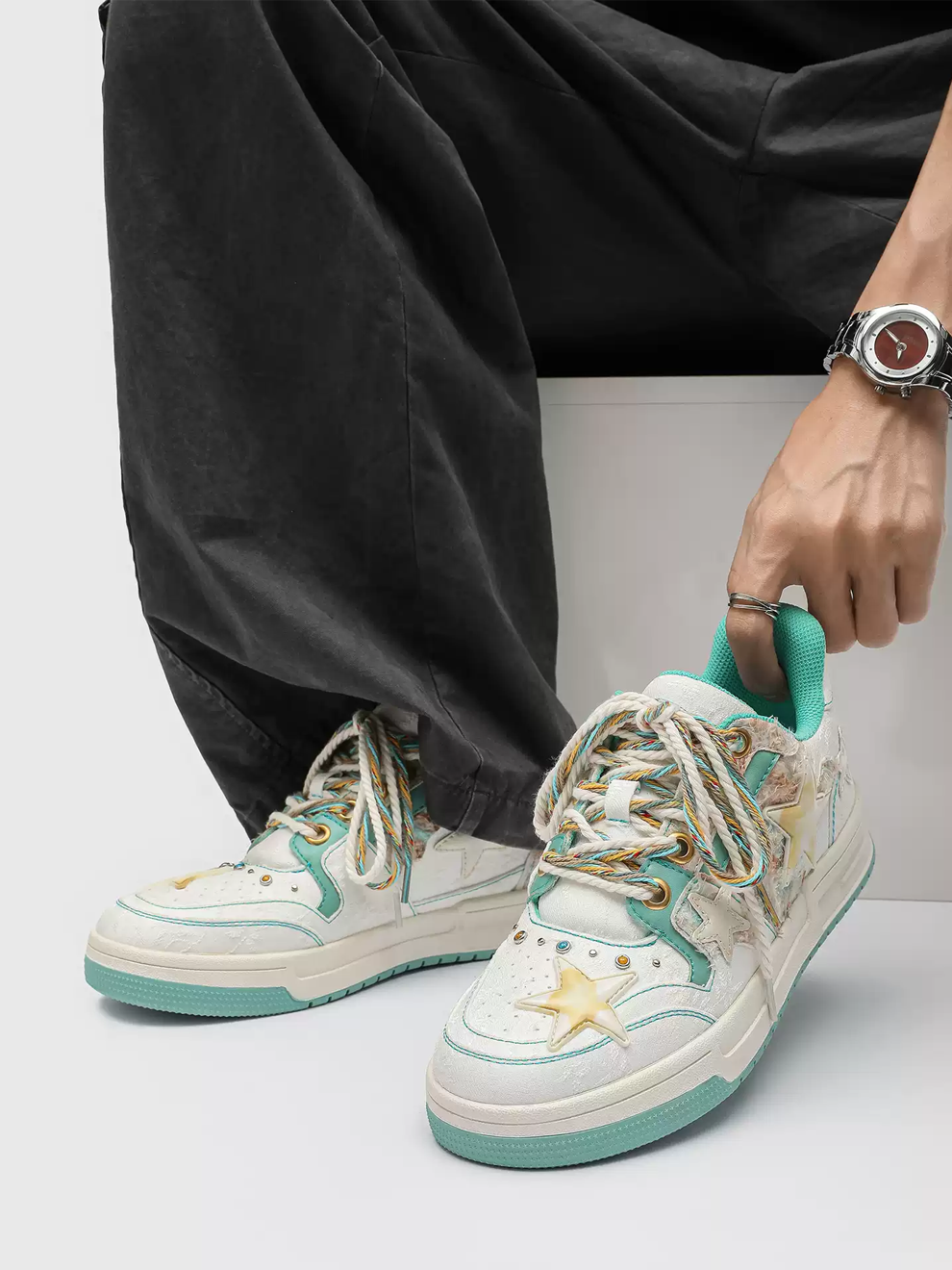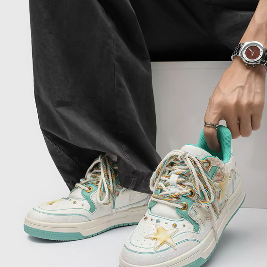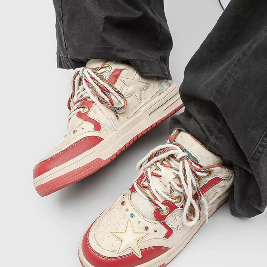 • Detail Features: Low-top silhouette, lace-up closure, star applique, contrast panels, chunky platform tread.