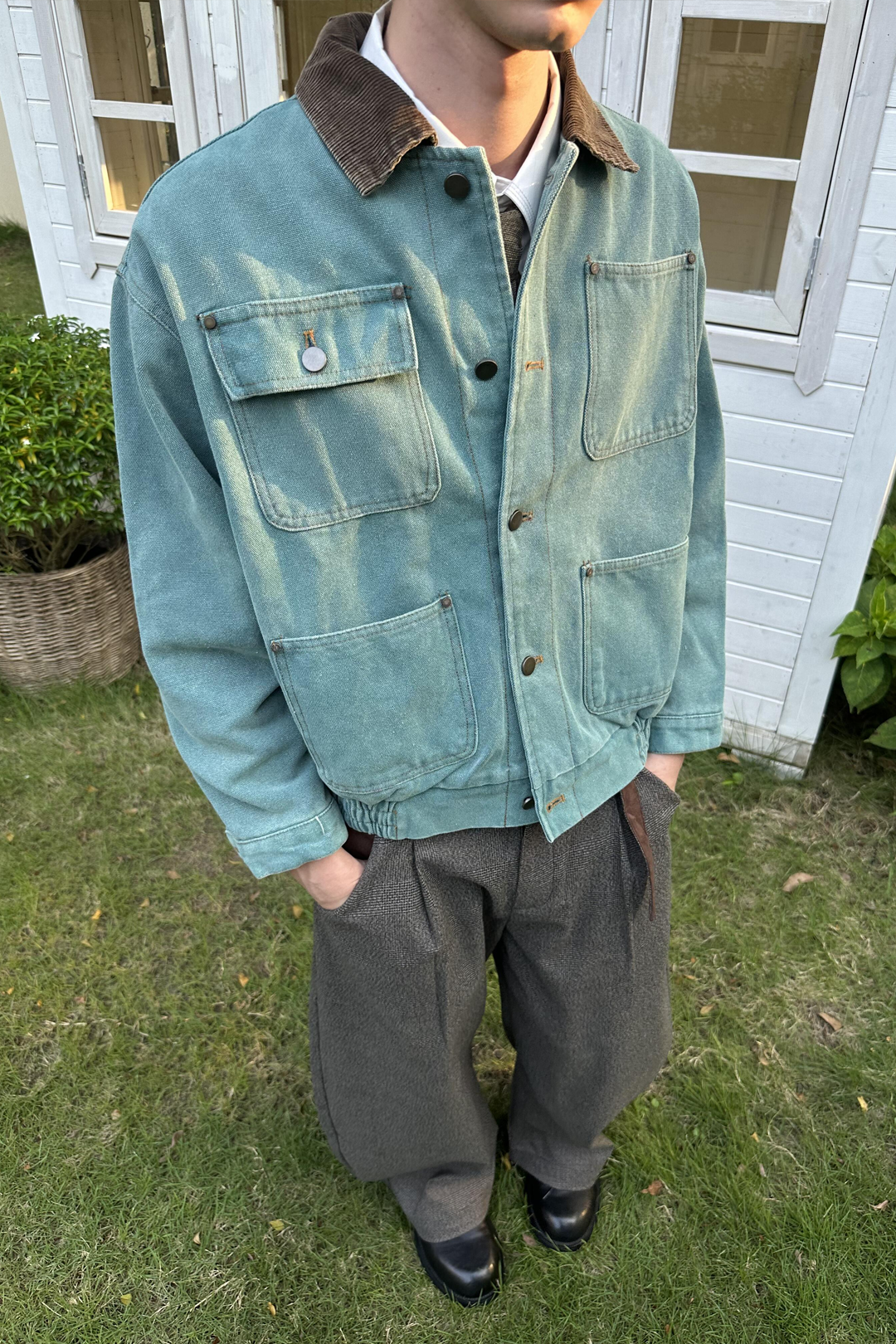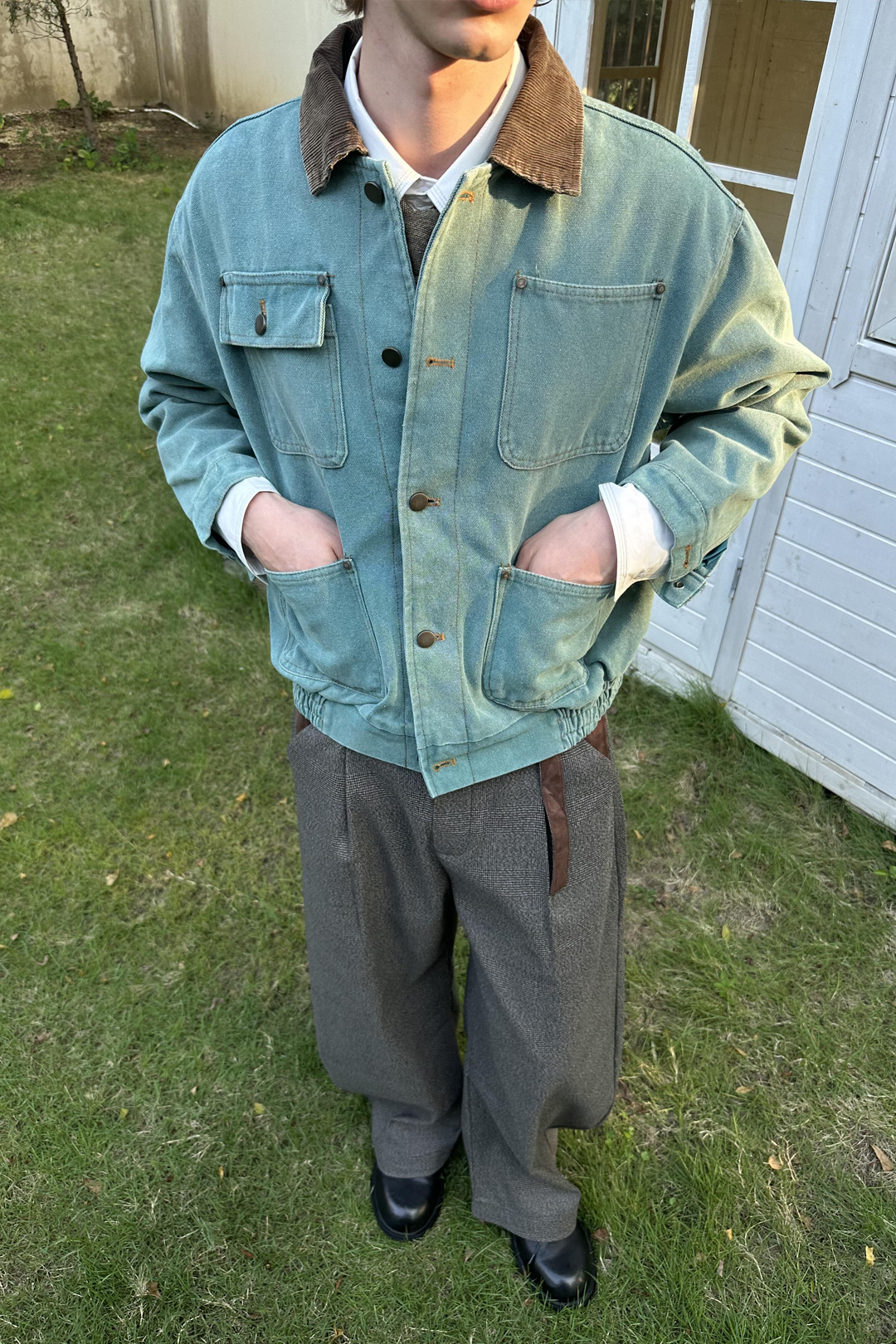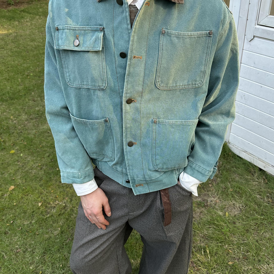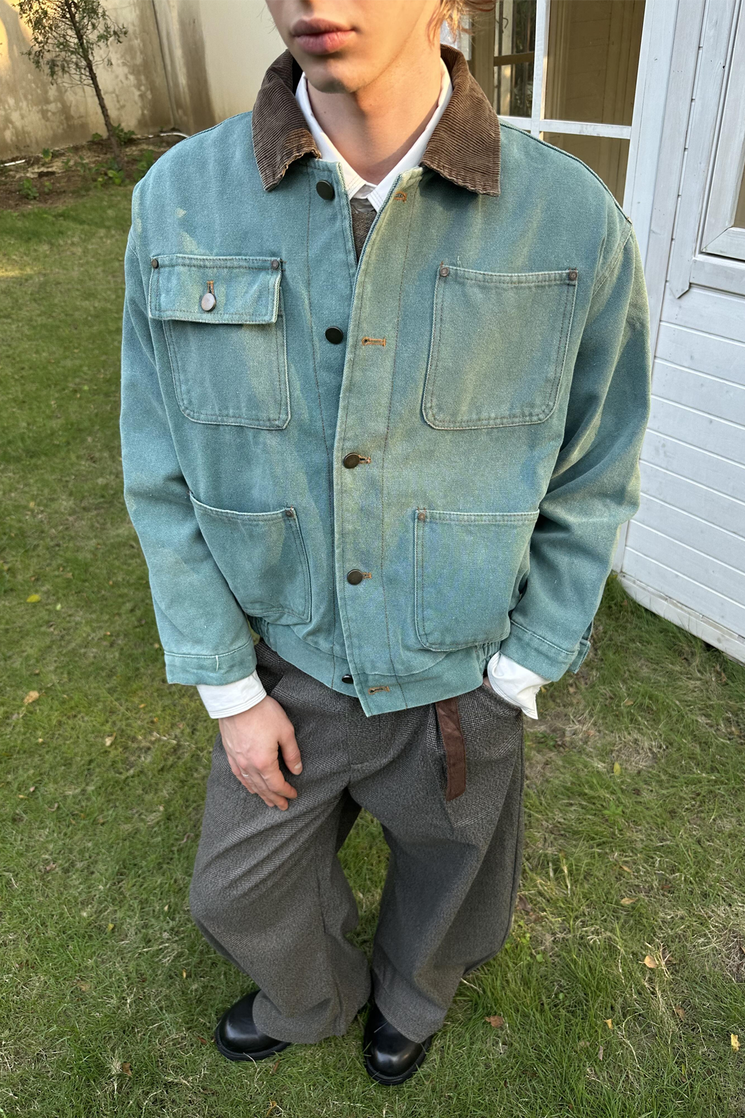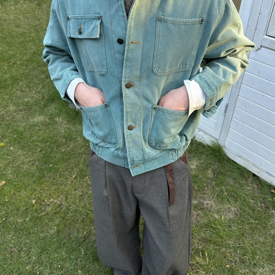 Designed for a loose yet structured drape. True to size gives a refined vintage fit, while sizing up enhances the oversized retro silhouette.