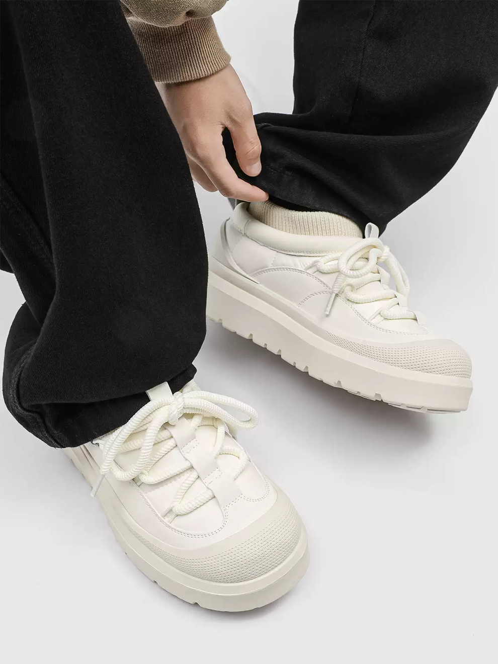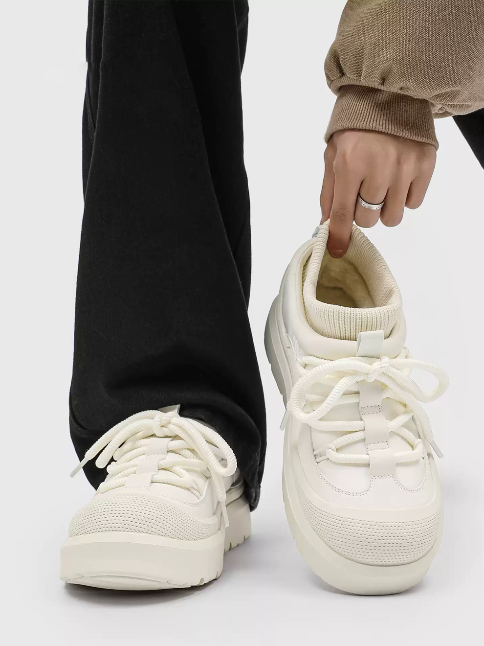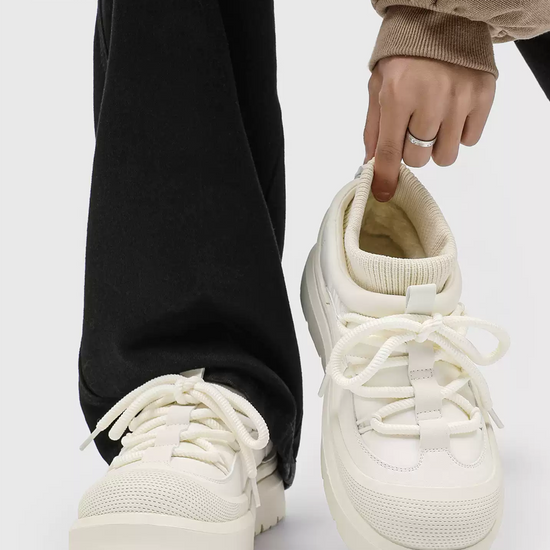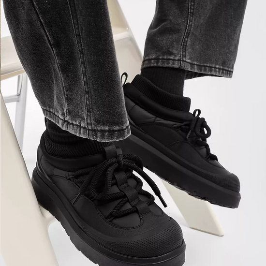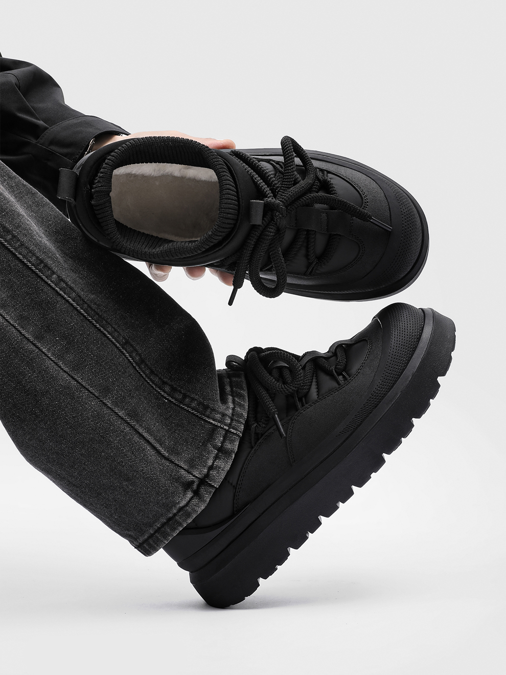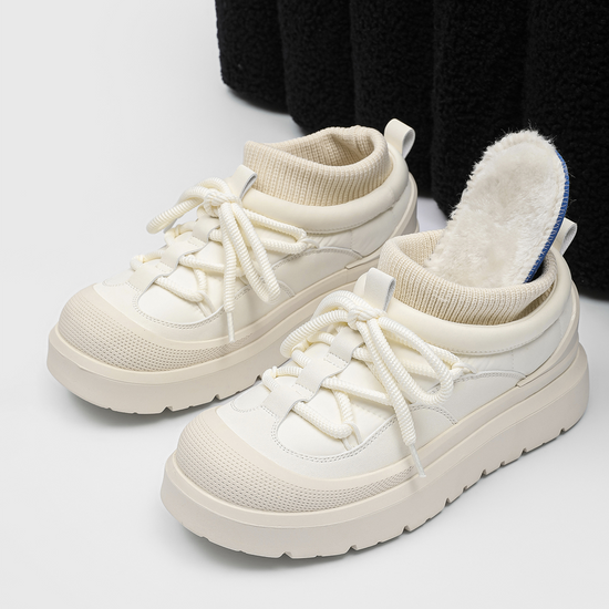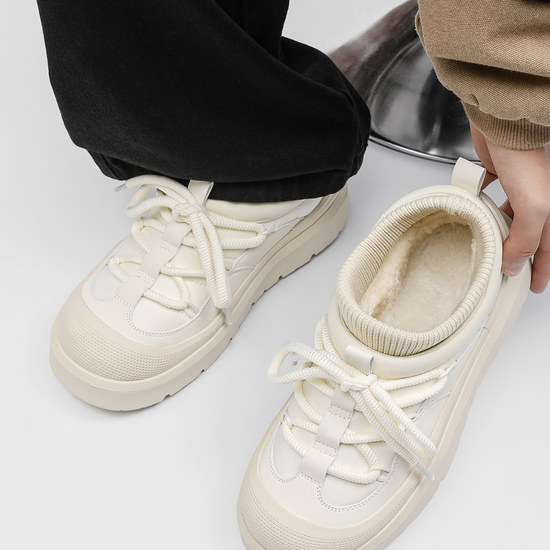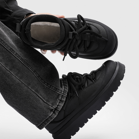 • Material: Upper — water-resistant synthetic leather + knit; Lining/Insole — faux-fur fleece; Midsole — EVA; Outsole — rubber lug sole.