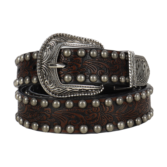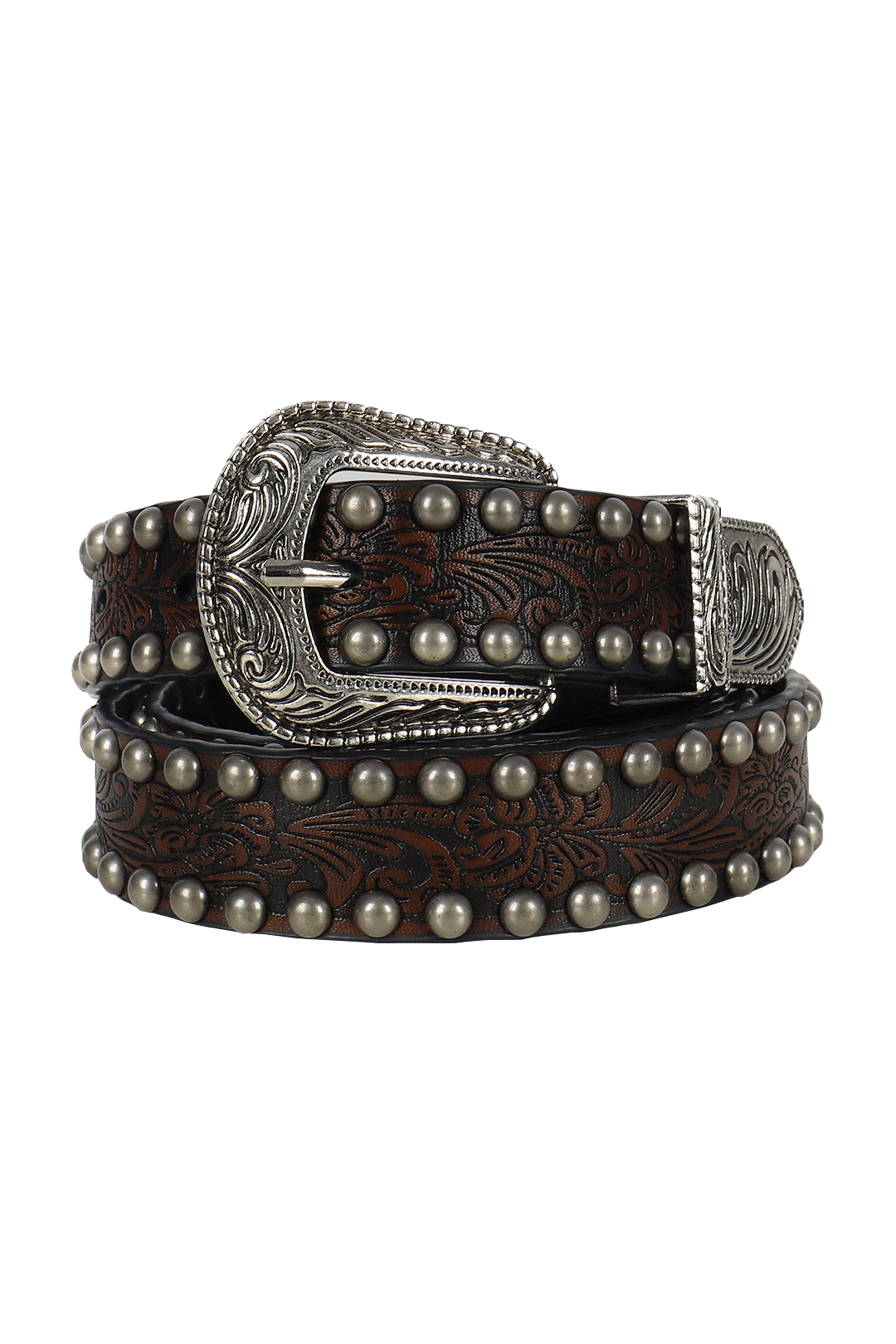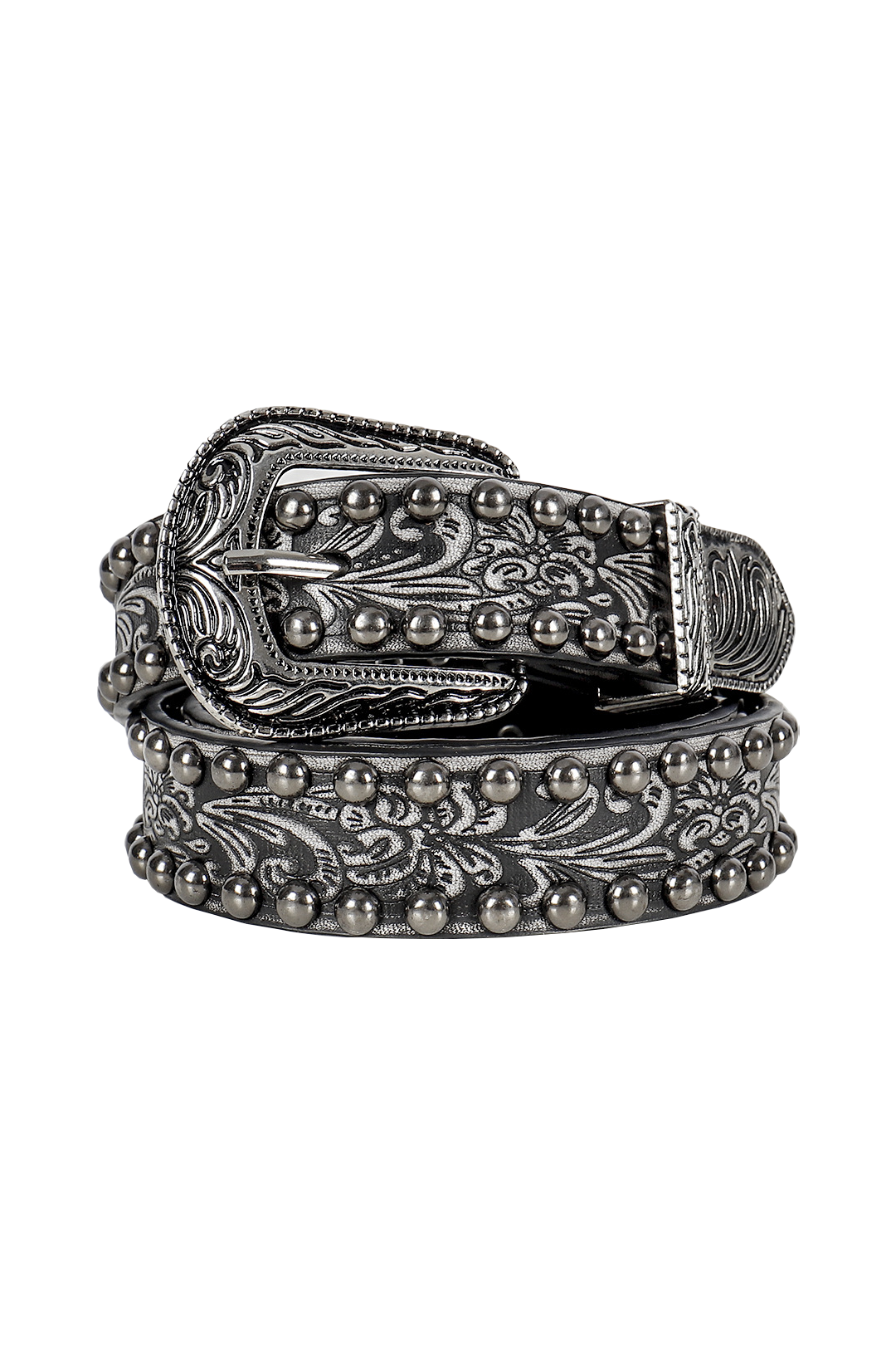 Make a bold statement with this belt, featuring intricate Baroque floral engravings and striking metallic studs. Crafted from embossed faux leather with a vintage-style engraved buckle, it blends antique charm with a rebellious edge. Perfect for elevating classic looks or adding a gothic, retro-punk twist to your outfit.