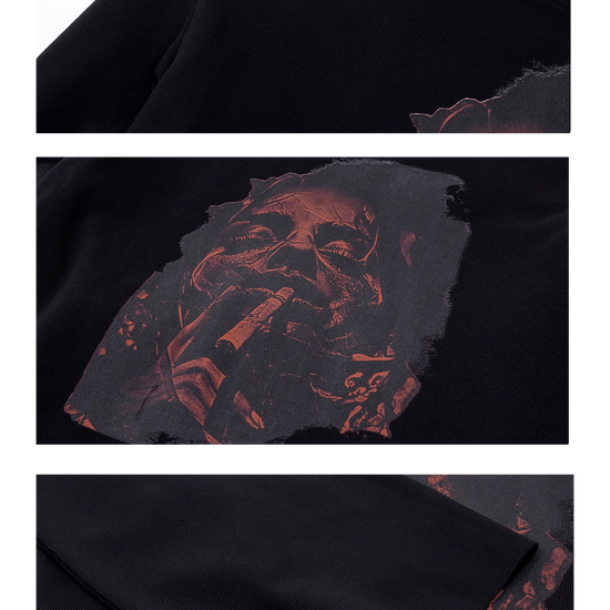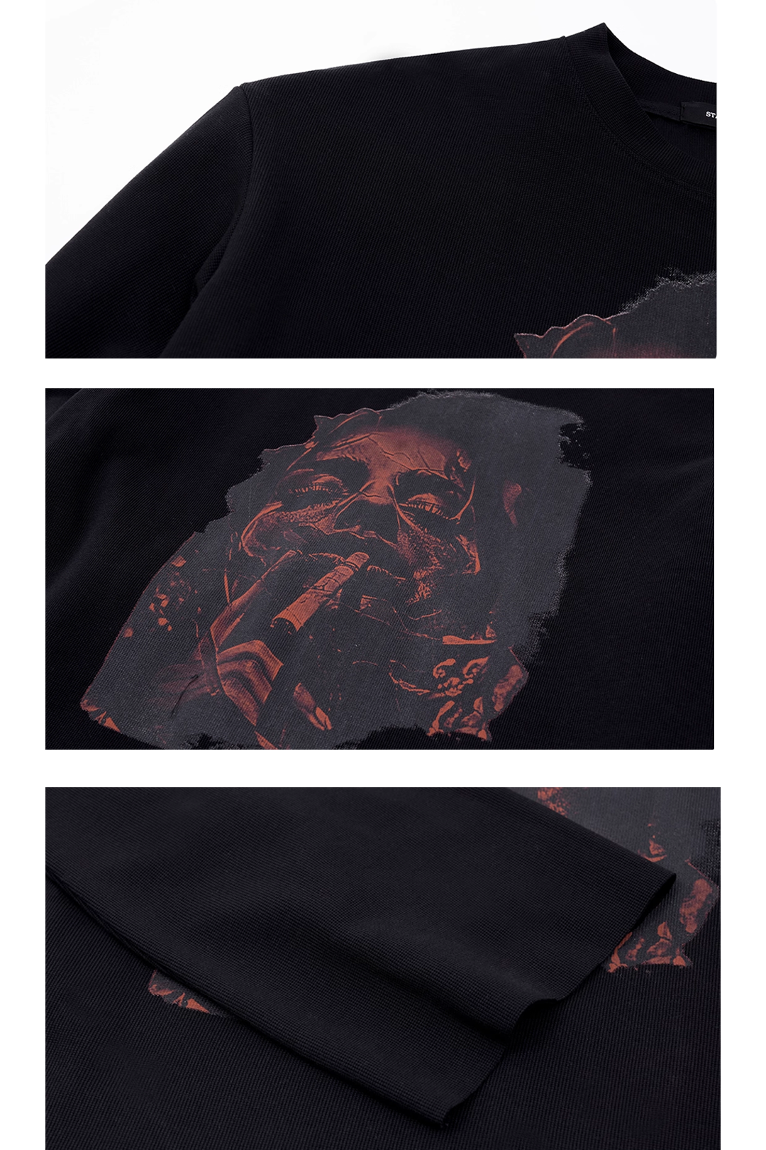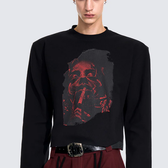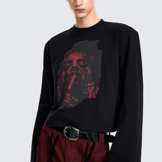 Vintage Street Print Cropped Long Sleeve T-shirt