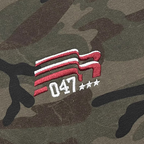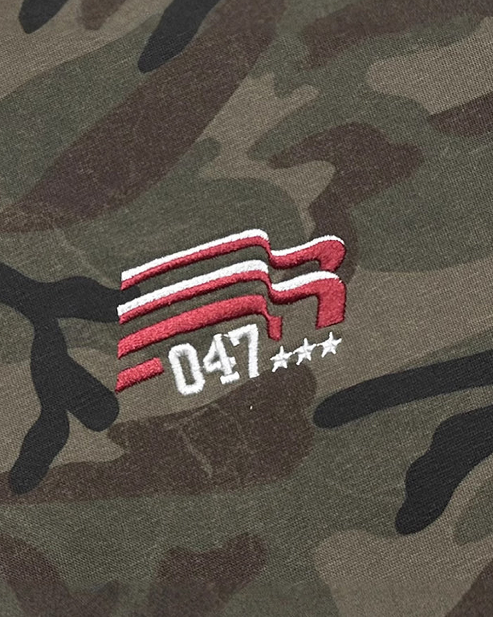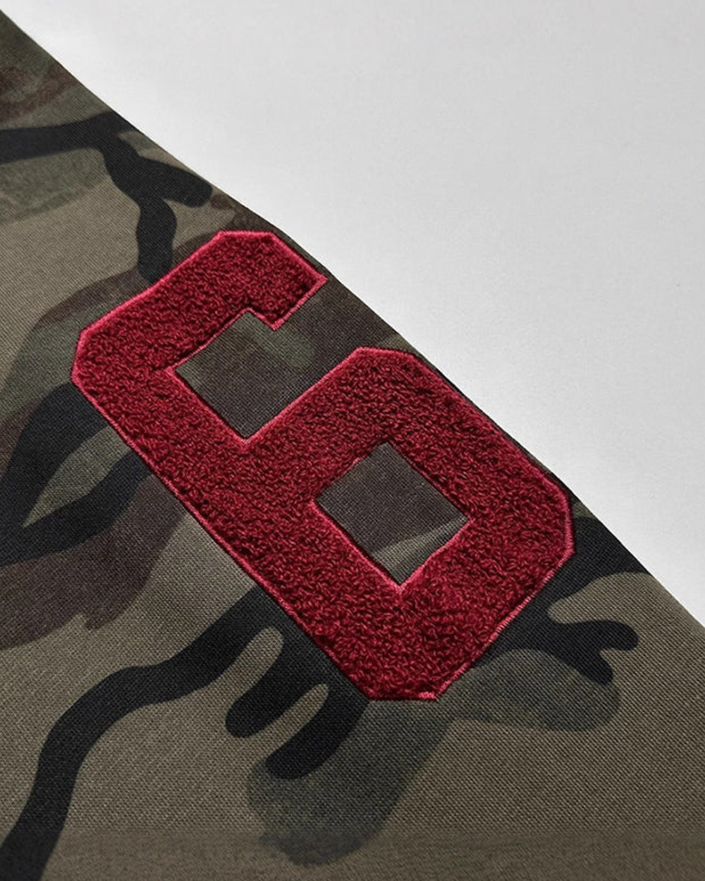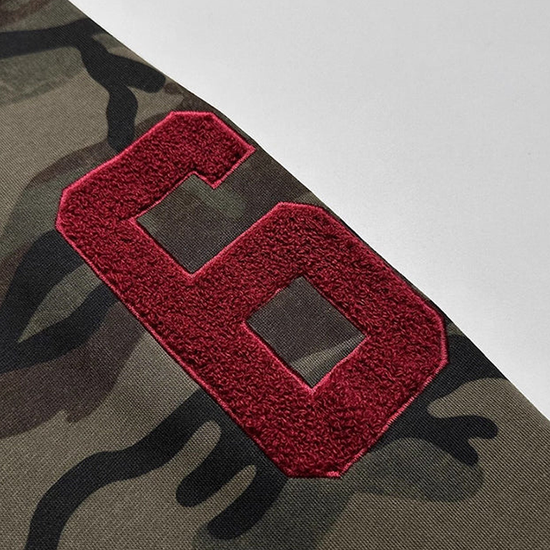- Military-inspired camo pattern with retro vibe